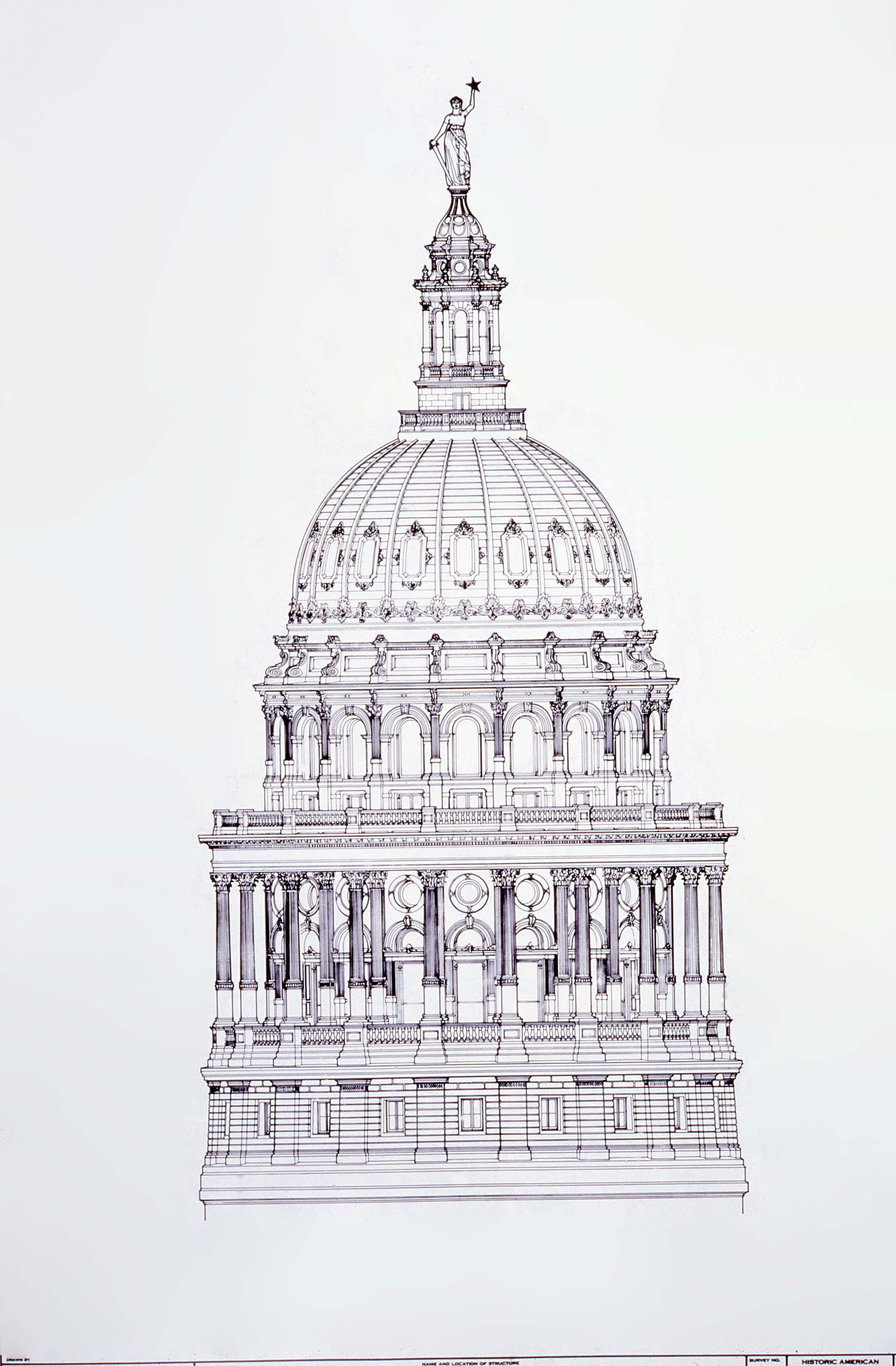Elijah E. Myers (American architect, 1832-1909), “Austin State Capital, Dome elevation”, Arch Design Images, accessed December 21, 2025, https://exhibits.lib.ttu.edu/s/archlib/item/53770