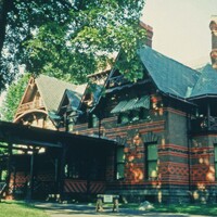 Edward Tuckerman Potter (American architect, 1831-1904), “Mark Twain House, Front Entrance Side View”, John P. White Collection, accessed November 8, 2025, https://exhibits.lib.ttu.edu/s/jpwhite/item/52285